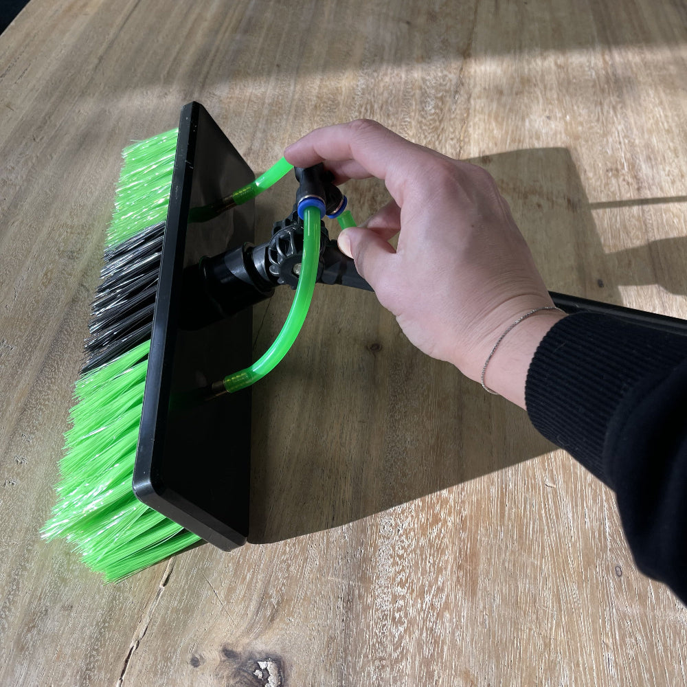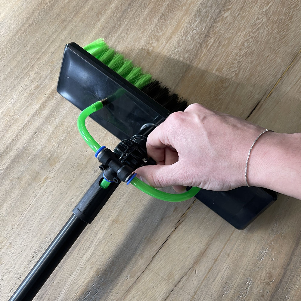 Gebruik de slang om de borstelkop aan te sluiten op de interne waterleiding in de stang.