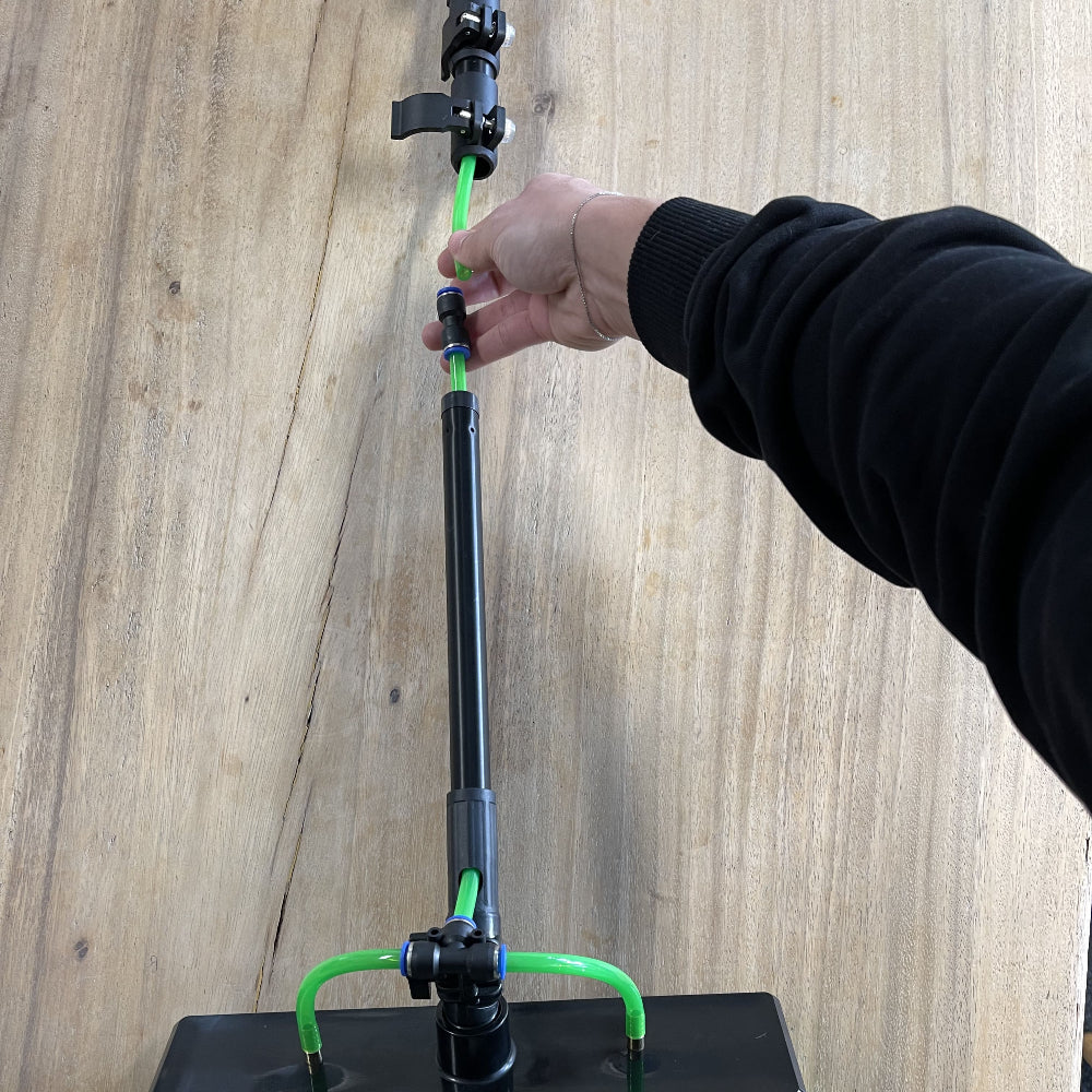Trek de slang door de onderkant van de telescopische stang en leid deze helemaal door naar boven.