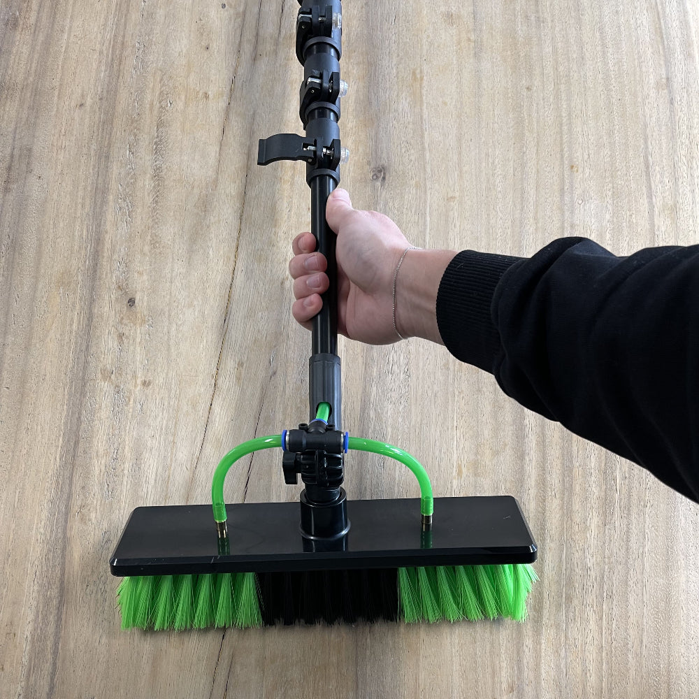 De telescopische wasborstel is jouw ideale hulpmiddel voor het schoonmaken van zonnepanelen, ramen en andere moeilijk bereikbare plekken. Met de verstelbare stang, zeepdispenser en de handige borstelkop maak je schoonmaken eenvoudiger én efficiënter. Volg deze stappen om de borstel in een mum van tijd gebruiksklaar te maken.