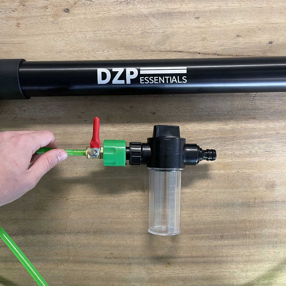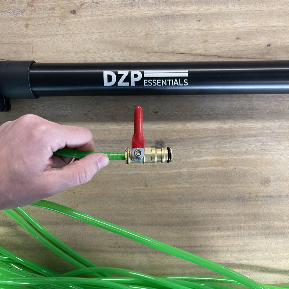 Verbind het andere uiteinde van de slang met de koperen schakelaar.